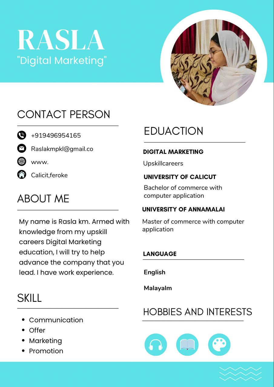 I am Rasla, and I have a Bachelor of Commerce from Calicut University and a postgraduate degree from Annamalai University. I am the best digital marketing strategist located in Calicut, Kerala.